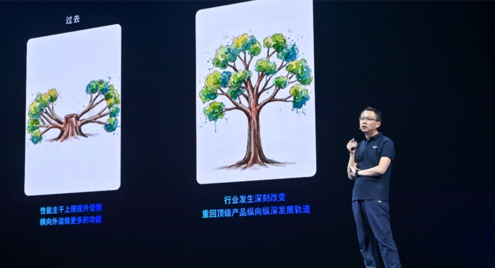 这至少会导致我们从现在开始会有两种完全不同的产品思路,一种是过去那种继续拼各种平行功能,一种是像我们和 FSD 这样,去把这棵树种得越来越大,越来越深,我们绝不去做一些零碎的功能,我要让这些功能慢慢给它时间,在这棵树上自己长出来。如果今天还没有到那个时间,我就选择不做它。这是我们的态度。