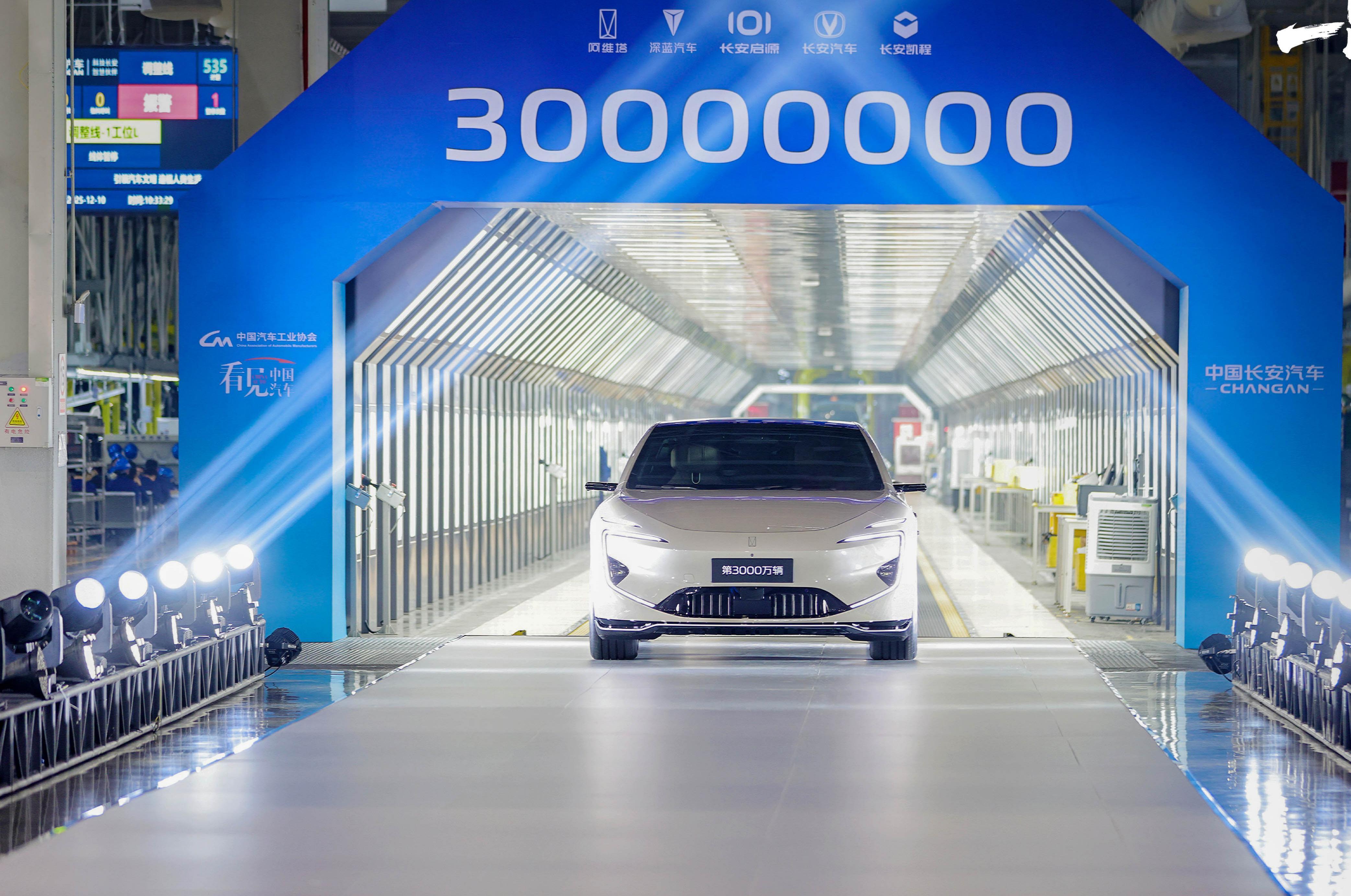 12月10日,在重庆阿维塔数智工厂,中国长安正式迎来了第3000万辆中国品牌汽车的下线。从第2000万辆到第3000万辆仅用了四年多,中国长安成为最快达成中国品牌3000万辆的汽车企业。